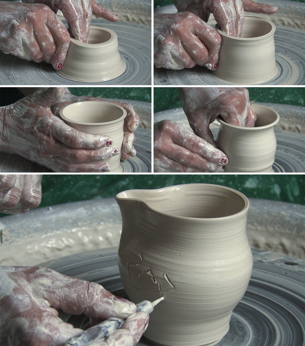 Ich habe begonnen, selbst Porzellangefäße frei zu drehen.