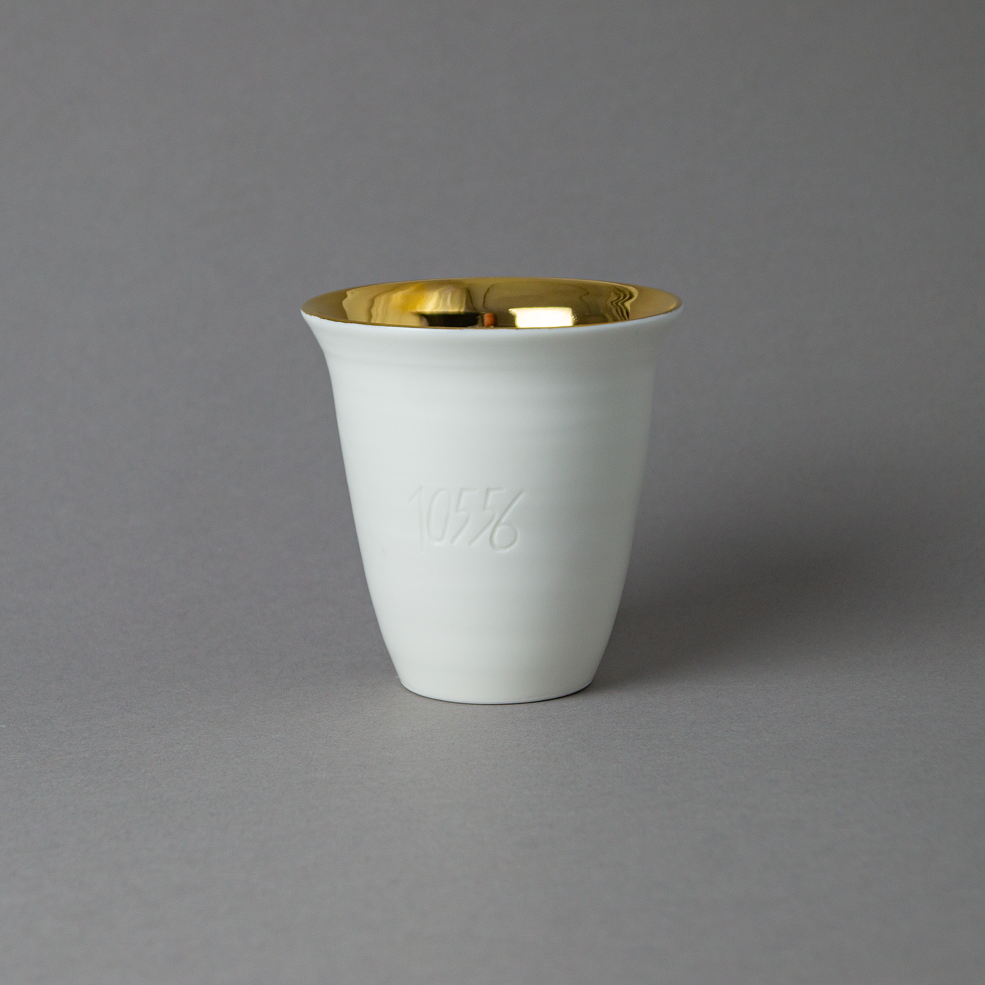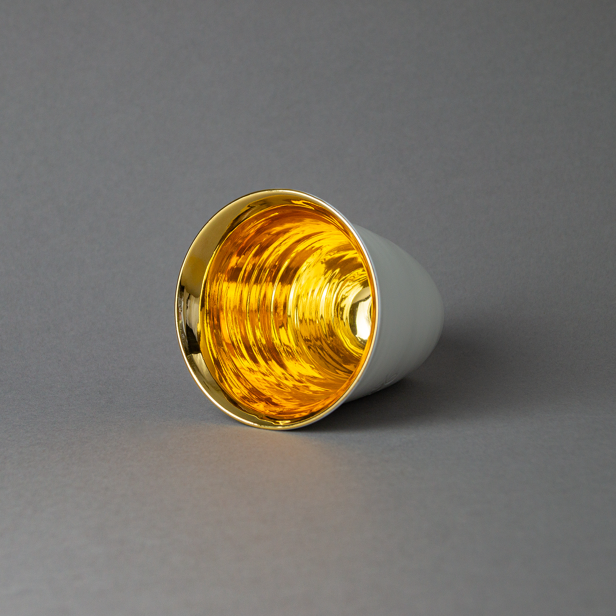 Freigedrehter Becher aus Limoges Porzellan mit eingravierter Item-Nummer 10556. Transparent glasiert mit Brandvergoldung 12 Karat. Dadurch wird Ihr Porzellanobjekt zu einem einzigartigen Unikat. Bleifrei. Bei 1300 Grad Celsius gebrannt. Robust und geschirrspültauglich.