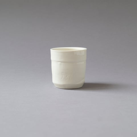 Freigedrehter Becher | klein aus Limoges Porzellan mit eingravierter fortlaufender Nummer. Dadurch wird Ihr Porzellanbecher zu einem einzigartigen Unikat. Transparent glasiert. Bleifrei. Bei 1300 Grad Celsius gebrannt. Robust und geschirrspültauglich.