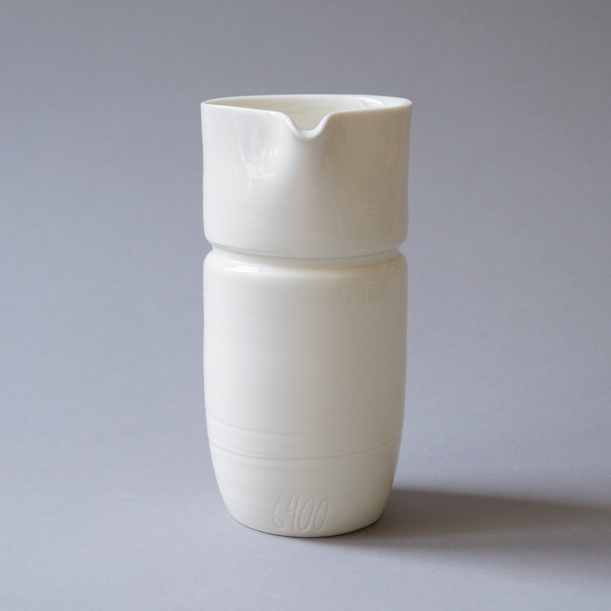 Freigedrehte Kanne | mittel aus Limoges Porzellan mit eingravierter fortlaufender Nummer. Dadurch wird Ihr Porzellanbecher zu einem einzigartigen Unikat. Transparent glasiert. Bleifrei. Bei 1300 Grad Celsius gebrannt. Robust und geschirrspültauglich.