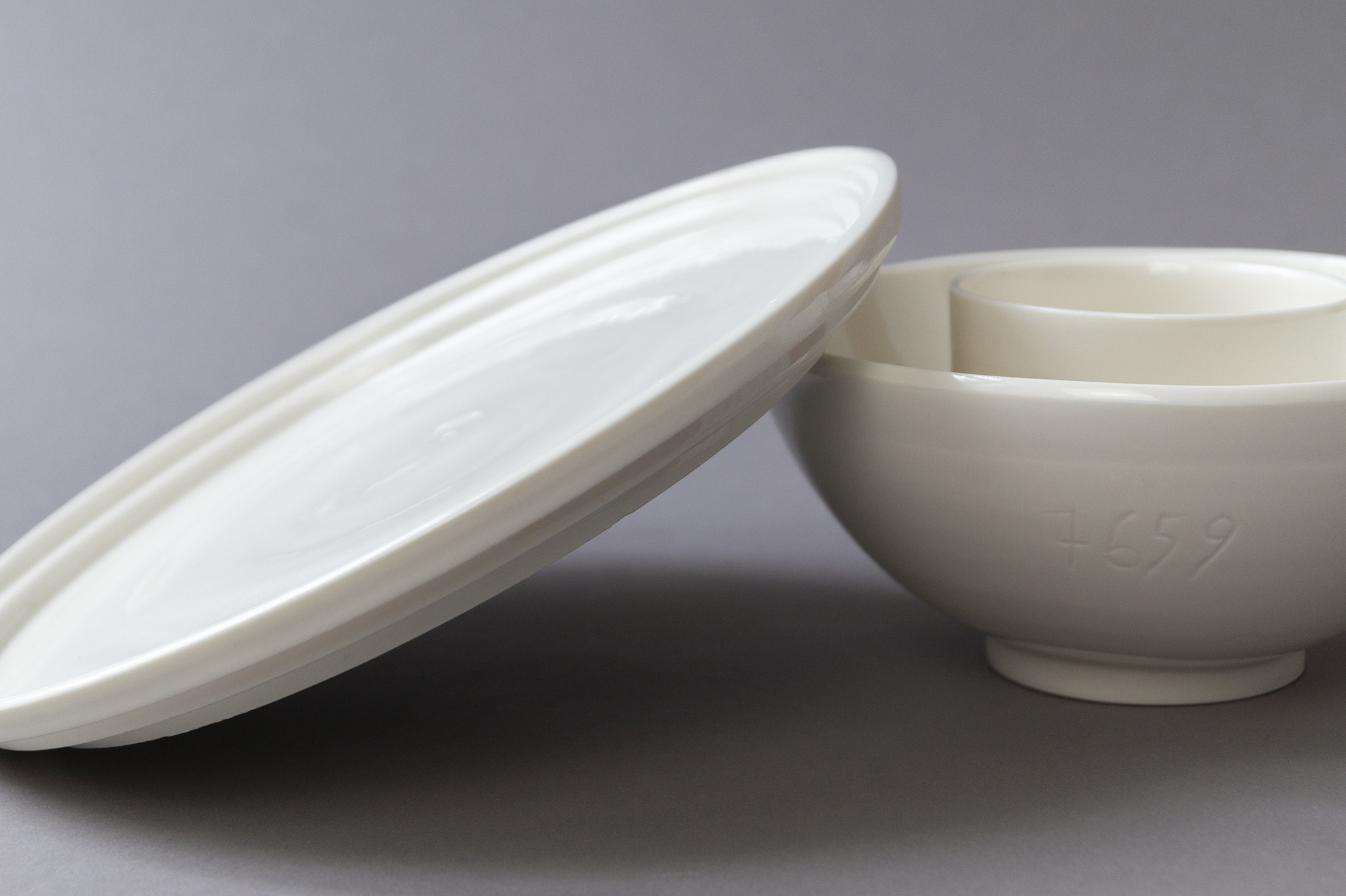 3 Freigedrehte Porzellanstücke aus Limoges Porzellan mit eingravierter fortlaufender Nummer. Dadurch wird jedes einzelne Porzellanobjekt zu einem einzigartigen Unikat. Transparent glasiert. Bleifrei. Bei 1300 Grad Celsius gebrannt. Robust und geschirrspültauglich.