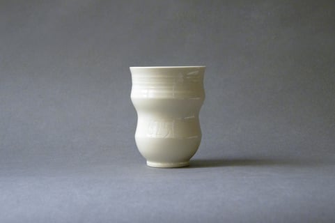 Freigedrehter Becher | Postmodern aus Limoges Porzellan mit eingravierter fortlaufender Nummer. Dadurch wird Ihr Porzellanbecher zu einem einzigartigen Unikat. Transparent glasiert. Bleifrei. Bei 1300 Grad Celsius gebrannt. Robust und geschirrspültauglich.