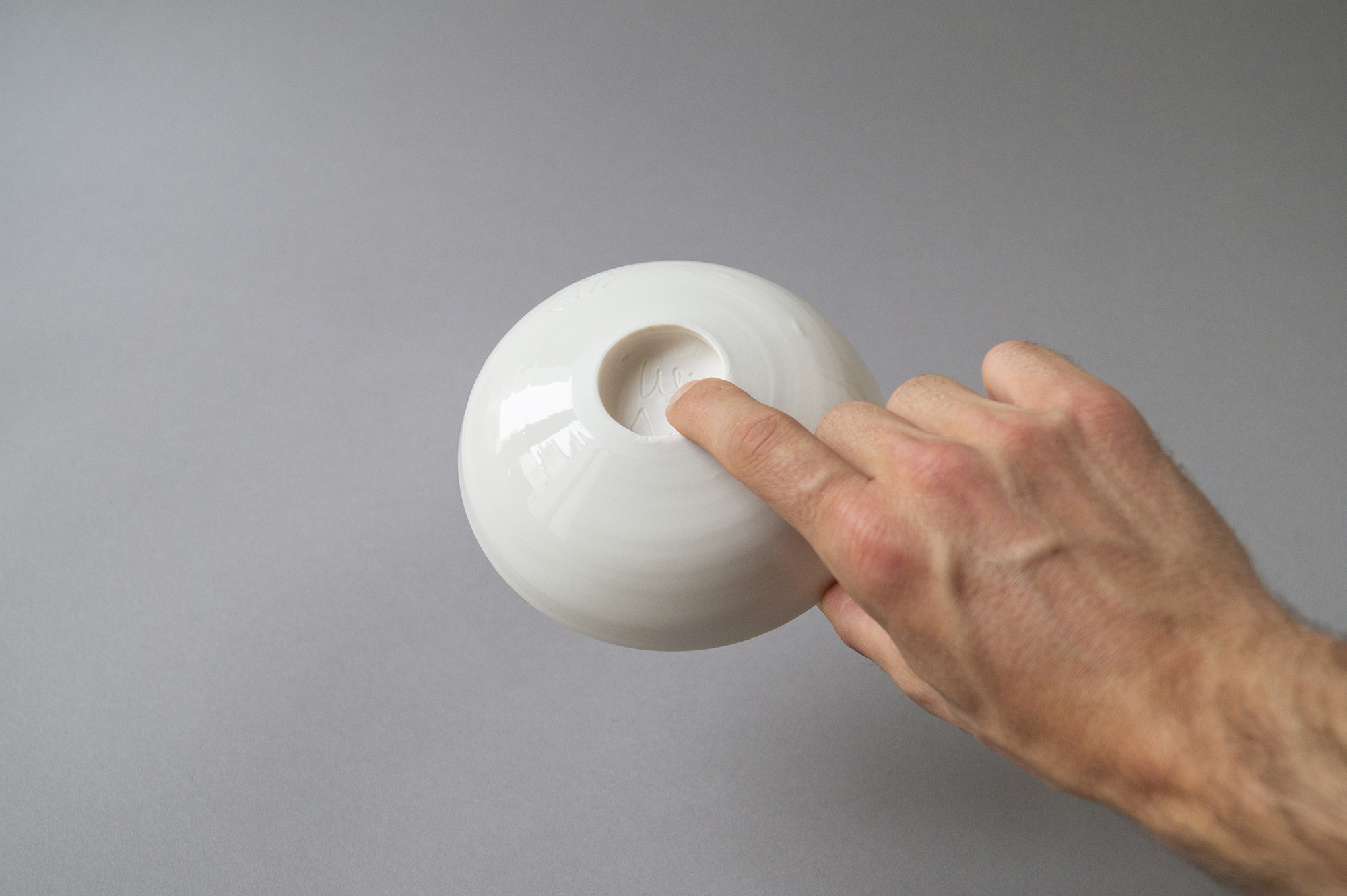 Freigedrehte Schale | Omphalos aus Limoges Porzellan mit eingravierter fortlaufender Nummer. Dadurch wird Ihr Porzellanobjekt zu einem einzigartigen Unikat. Transparent glasiert. Bleifrei. Bei 1300 Grad Celsius gebrannt. Robust und geschirrspültauglich.