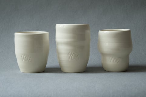 3 freigedrehte Porzellanstücke mit eingravierten fortlaufenden Nummern. Dadurch wird jedes einzelne Porzellan zu einem Unikat. Transparent glasiert. Bleifrei. Bei 1300 Grad Celsius gebrannt. Robust und geschirrspültauglich.