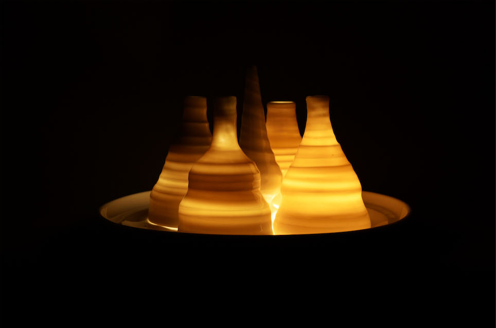 5-teiliges freigedrehtes Windlicht | Adventskranz aus Limoges Porzellan mit eingravierter fortlaufender Nummer. Dadurch wird Ihr Porzellanobjekt zu einem